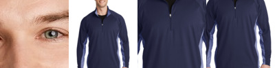 100% polyester wicking knit; Wicks moisture away from body; Color secure technology helps prevent dye migration; Set-in sleeves; Quarter-zip pullover style; Tear away label;