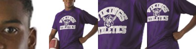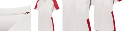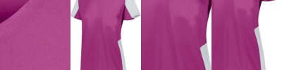 - Two color jersey side inserts, sleeve cuffs and V-neck
