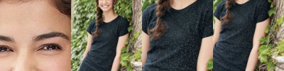 - Raglan sleeves and V-notch collar