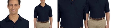 6.3 oz./yd2 / 215 gsm, 100% combed cotton pique with EZ Cool wicking technology; no-pill, no-fade, no-shrink, no-curl collar, no-wrinkle performance; Active fit; Three-button placket;