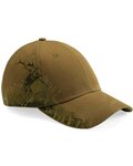 100% cotton; Green camo is 65% polyester / 35% cotton; 6-panel, Low-profile; Four-row stitching on visor; 3 1/8" crown; Unstructured; Matching undervisor; Antique brass buckle closure;